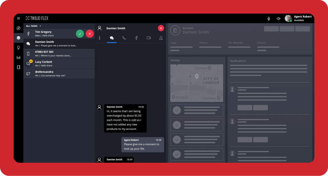 Personalize every step of the customer journey with solutions like intelligent chatbots, custom account notifications, a completely programmable cloud-based call center, and more.